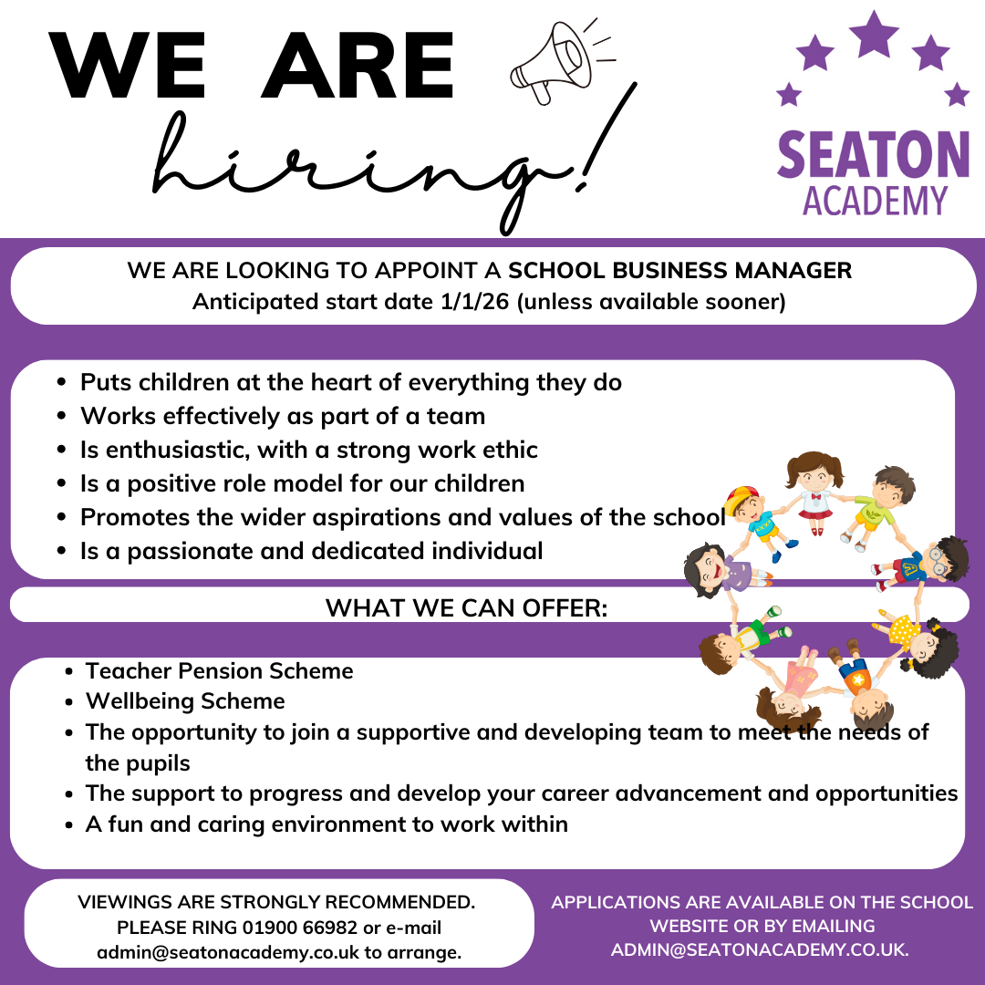 The successful candidate will bring energy, expertise, and a strategic mindset to support the efficient running of our academy. You will work alongside our passionate staff, contributing to an environment where children are given the very best opportunities to succeed.